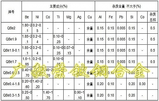 加工鈹青銅含鈹量控制在2%以下,國產(chǎn)鈹銅加入0.3%的鎳,或加0.3%的鈷。